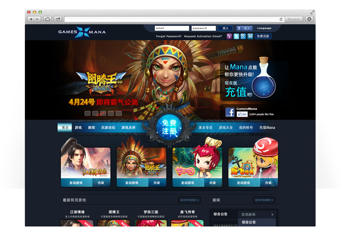 GamesMana is a game portal that host variety web games and allow member play games in browser with login.