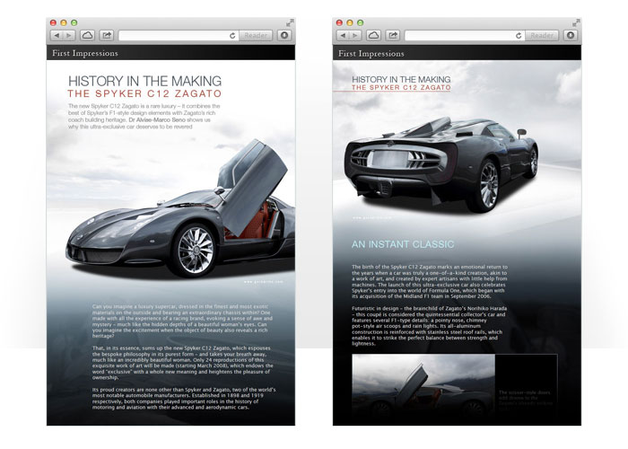 Luxury Insider online magazine article for SPYKER C12 ZAGATO
